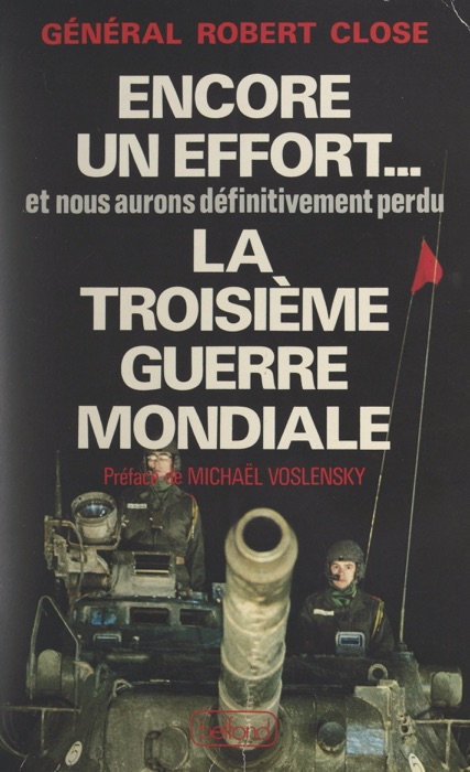 Il y a deux façons de perdre une guerre : la première est de succomber, les armes à la main. La seconde est de succomber, avant même d’avoir été en état de se défendre. En ce qui concerne l’Europe occidentale — une Europe balkanisée, incapable de prendre les mesures qui s’imposent face à la formidable puissance de l’Union soviétique —, l’histoire de sa défaite et de son anéantissement à venir est déjà écrite, à moins d’un ultime sursaut. Au rythme actuel, le rapport des forces sera bientôt de 1 à 4 en faveur de l’URSS pour les armes nucléaires. Mais le déséquilibre est déjà de 1 à 3 en faveur de l’Union soviétique, pour les armes conventionnelles. En cas d’attaque surprise, les forces de l’OTAN ne pourraient pas résister plus de 10 heures. En moins de 48 heures, les tanks soviétiques occuperaient les bords du Rhin... Pour beaucoup, ce livre sonnera comme le tocsin. Mais si on n’entend pas l’appel du général Close, il sonnera comme un glas.